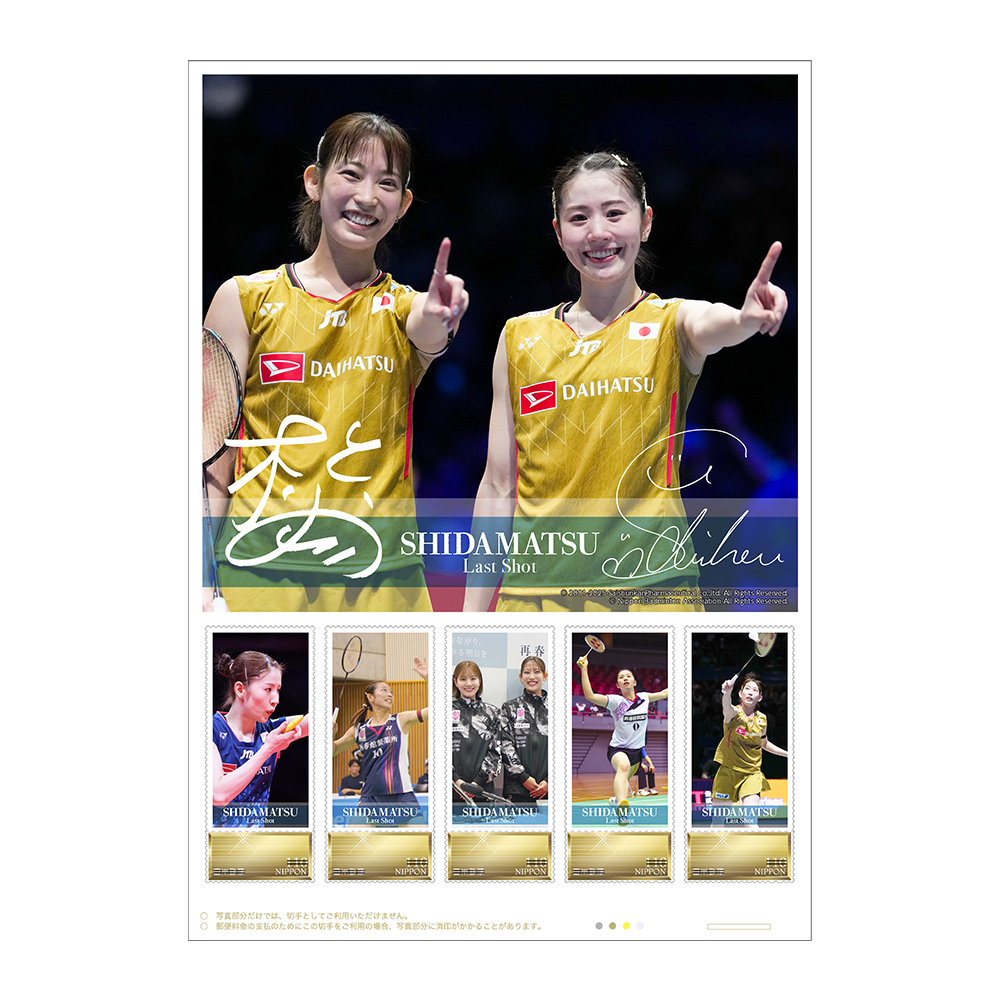 The World Championships were held in August 2025.The memorial frame stamp set features badminton women's doubles players Chiharu Shida and Nami Matsuyama, who won a bronze medal in their final tournament as the "Shida-Matsu Pair" and ended their partnership on a high note.